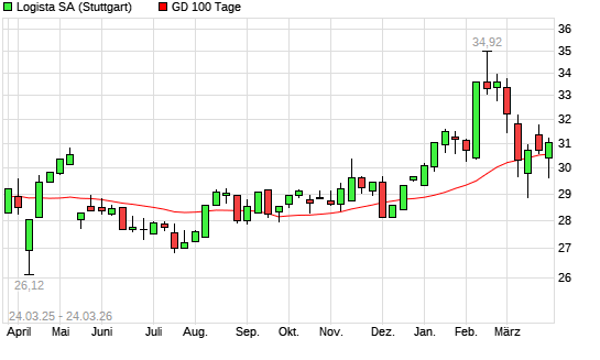 Mit dem Rücksetzer auf 30,42 EUR hat die Compañia de Distribucion Integral Logista S.A.-Aktie am 23.03.2026 die 100-Tage-Linie nach unten gekreuzt.