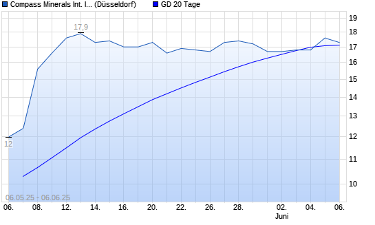 Mit dem Anstieg auf 17,20 EUR hat die Compass Minerals-Aktie am 05.06.2025 die 20-Tage-Linie nach oben gekreuzt.