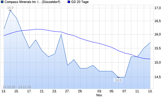 Mit dem Anstieg auf 15,10 EUR hat die Compass Minerals-Aktie am 12.11.2025 die 20-Tage-Linie nach oben gekreuzt.