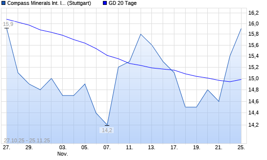 Mit dem Anstieg auf 15,00 EUR hat die Compass Minerals-Aktie am 24.11.2025 die 20-Tage-Linie nach oben gekreuzt.