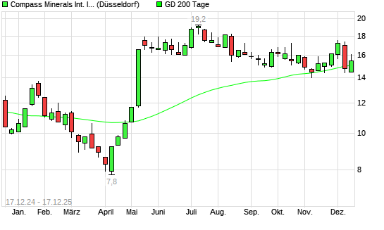 Mit dem Anstieg auf 15,30 EUR hat die Compass Minerals-Aktie am 16.12.2025 die 200-Tage-Linie nach oben gekreuzt.