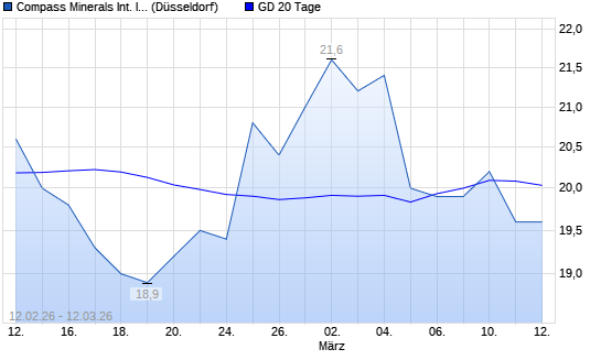 Mit dem Rücksetzer auf 19,70 EUR hat die Compass Minerals-Aktie am 11.03.2026 die 20-Tage-Linie nach unten gekreuzt.