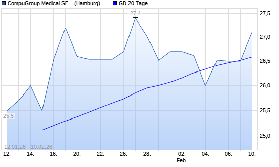 Mit dem Rücksetzer auf 26,50 EUR hat die CompuGroup Medical-Aktie am 09.02.2026 die 20-Tage-Linie nach unten gekreuzt.