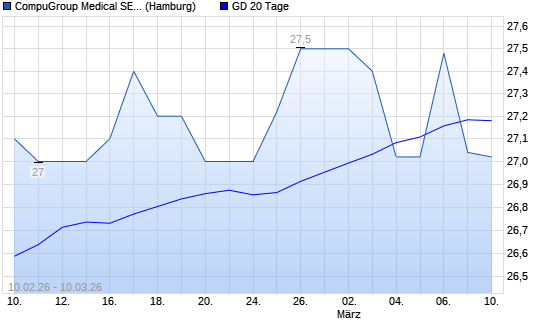 Mit dem Rücksetzer auf 27,04 EUR hat die CompuGroup Medical-Aktie am 09.03.2026 die 20-Tage-Linie nach unten gekreuzt.