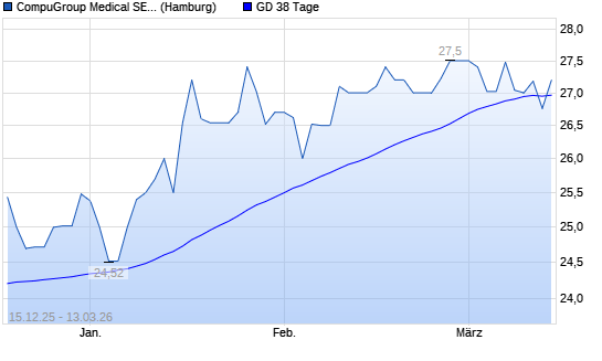 Mit dem Rücksetzer auf 26,76 EUR hat die CompuGroup Medical-Aktie am 12.03.2026 die 38-Tage-Linie nach unten gekreuzt.