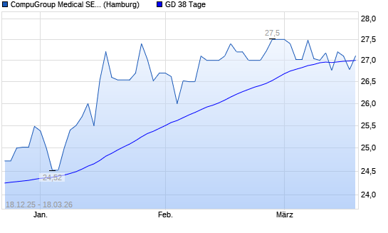 Mit dem Rücksetzer auf 26,78 EUR hat die CompuGroup Medical-Aktie am 17.03.2026 die 38-Tage-Linie nach unten gekreuzt.