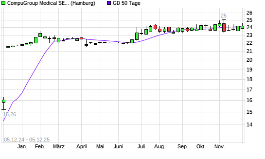 Mit dem Rücksetzer auf 24,00 EUR hat die CompuGroup Medical-Aktie am 04.12.2025 die 50-Tage-Linie nach unten gekreuzt.