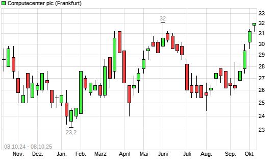 Mit dem Anstieg auf 31,80 EUR hat die Computacenter-Aktie (ISIN GB00BV9FP302) am 07.10.2025 ein neues 12-Monats-Hoch erreicht und damit den Kurs vom 06.10.2025 eingestellt.