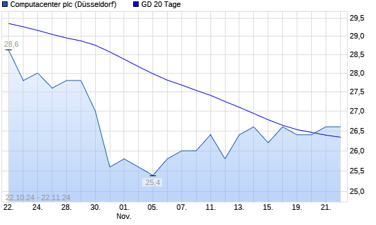 Mit dem Anstieg auf 26,40 EUR hat die Computacenter-Aktie am 21.11.2024 die 20-Tage-Linie nach oben gekreuzt.