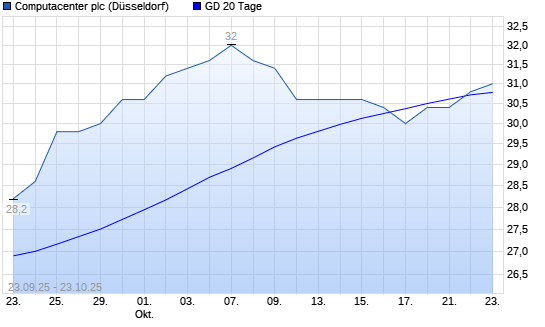 Mit dem Anstieg auf 30,60 EUR hat die Computacenter-Aktie am 22.10.2025 die 20-Tage-Linie nach oben gekreuzt.