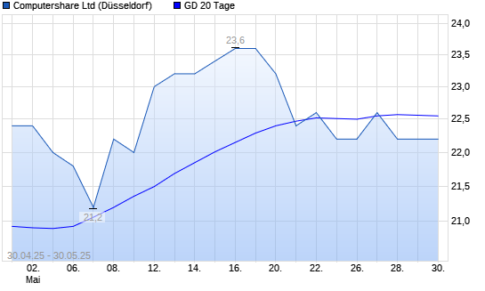 Mit dem Anstieg auf 22,80 EUR hat die Computershare-Aktie am 29.05.2025 die 20-Tage-Linie nach oben gekreuzt.