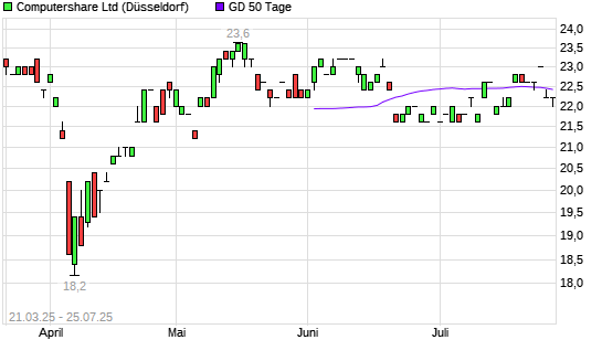 Mit dem Rücksetzer auf 22,40 EUR hat die Computershare-Aktie am 24.07.2025 die 50-Tage-Linie nach unten gekreuzt.