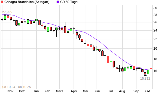 Mit dem Anstieg auf 16,10 EUR hat die Conagra Brands-Aktie am 07.10.2025 die 50-Tage-Linie nach oben gekreuzt.