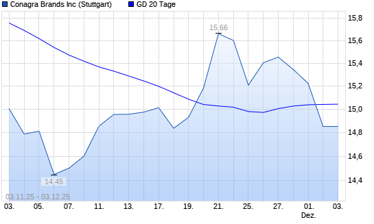 Mit dem Rücksetzer auf 14,72 EUR hat die Conagra Brands-Aktie am 02.12.2025 die 20-Tage-Linie nach unten gekreuzt.