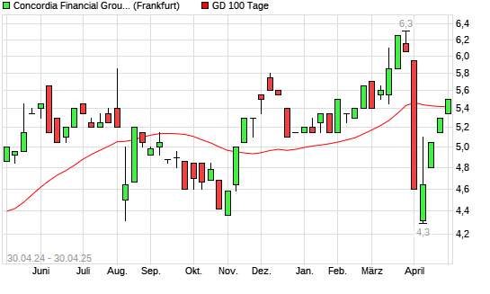 Mit dem Anstieg auf 5,45 EUR hat die Concordia Financial Group-Aktie am 29.04.2025 die 100-Tage-Linie nach oben gekreuzt.