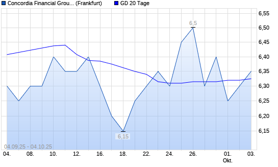Mit dem Anstieg auf 6,35 EUR hat die Concordia Financial Group-Aktie am 03.10.2025 die 20-Tage-Linie nach oben gekreuzt.