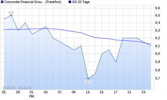 Mit dem Rücksetzer auf 6,10 EUR hat die Concordia Financial Group-Aktie am 24.10.2025 die 20-Tage-Linie nach unten gekreuzt.