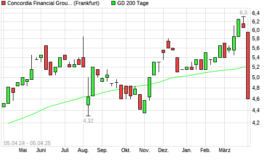 Mit dem Rücksetzer auf 4,60 EUR hat die Concordia Financial Group-Aktie am 04.04.2025 die 200-Tage-Linie nach unten gekreuzt.