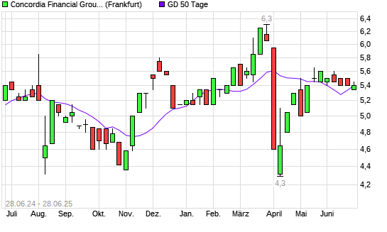 Mit dem Rücksetzer auf 5,40 EUR hat die Concordia Financial Group-Aktie am 27.06.2025 die 50-Tage-Linie nach unten gekreuzt.