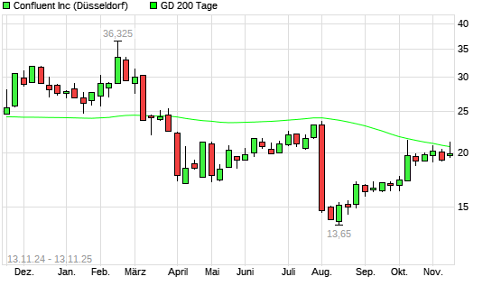 Mit dem Anstieg auf 21,12 EUR hat die Confluent-Aktie am 12.11.2025 die 200-Tage-Linie nach oben gekreuzt.