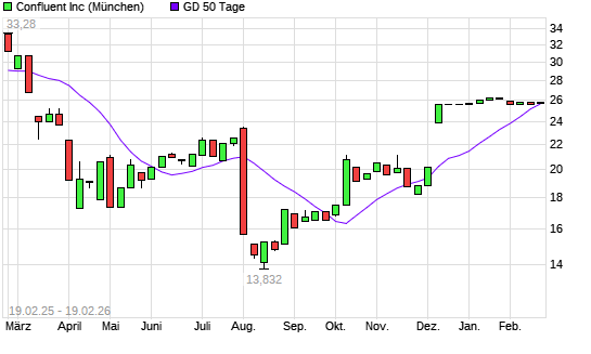 Mit dem Anstieg auf 25,80 EUR hat die Confluent-Aktie am 18.02.2026 die 50-Tage-Linie nach oben gekreuzt.