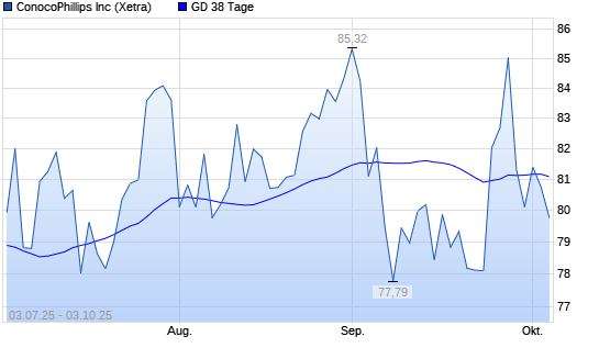 Mit dem Anstieg auf 81,18 EUR hat die ConocoPhillips-Aktie am 02.10.2025 die 38-Tage-Linie nach oben gekreuzt.