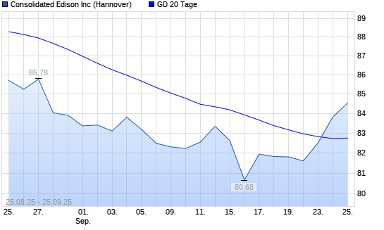 Mit dem Anstieg auf 83,34 EUR hat die Consolidated Edison-Aktie am 24.09.2025 die 20-Tage-Linie nach oben gekreuzt.