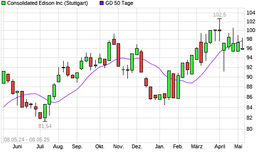 Mit dem Anstieg auf 97,80 EUR hat die Consolidated Edison-Aktie am 07.05.2025 die 50-Tage-Linie nach oben gekreuzt.