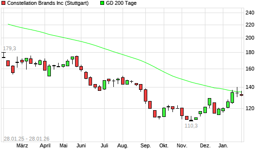 Mit dem Anstieg auf 135,35 EUR hat die Constellation Brands-Aktie am 27.01.2026 die 200-Tage-Linie nach oben gekreuzt.