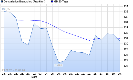 Mit dem Rücksetzer auf 130,55 EUR hat die Constellation Brands-Aktie am 20.03.2026 die 20-Tage-Linie nach unten gekreuzt.