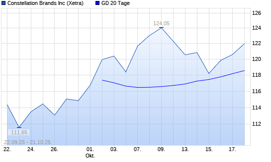 Mit dem Anstieg auf 120,05 EUR hat die Constellation Brands-Aktie am 20.10.2025 die 20-Tage-Linie nach oben gekreuzt.Die Constellation Brands-Aktie befindet sich seit dem 11.12.2024 im langfristigen ...weiterlesen