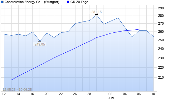 Mit dem Anstieg auf 262,75 EUR hat die Constellation Energy Corporation-Aktie am 09.06.2025 die 20-Tage-Linie nach oben gekreuzt.