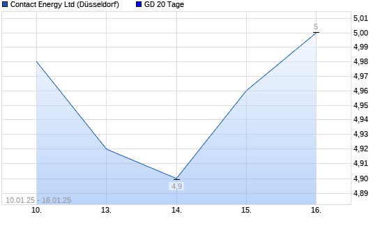 Mit dem Anstieg auf 5,10 EUR hat die Contact Energy-Aktie am 15.01.2025 die 20-Tage-Linie nach oben gekreuzt.