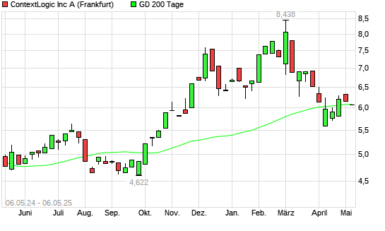 Mit dem Rücksetzer auf 6,07 EUR hat die ContextLogic A (WISH)-Aktie am 05.05.2025 die 200-Tage-Linie nach unten gekreuzt.