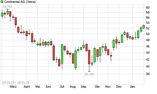Mit dem Anstieg auf 69,40 EUR hat die Continental-Aktie (ISIN DE0005439004) am 27.01.2025 ein neues 6-Monats-Hoch erreicht und damit den Kurs vom 24.01.2025 eingestellt.