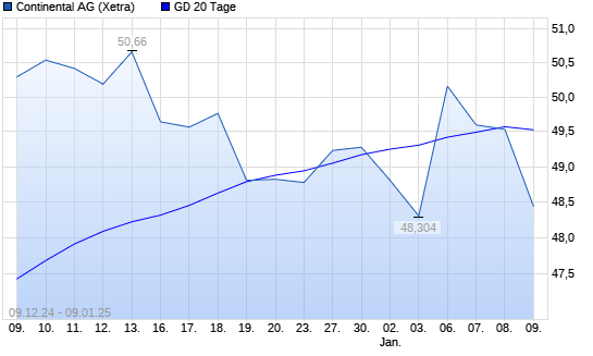 Mit dem Anstieg auf 66,46 EUR hat die Continental-Aktie am 08.01.2025 die 20-Tage-Linie nach oben gekreuzt.