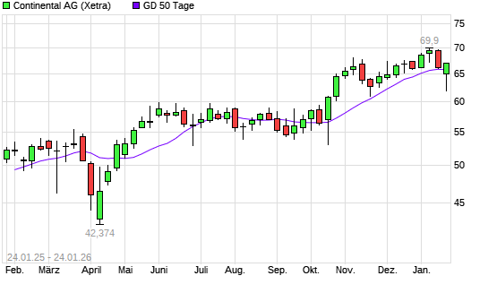 Mit dem Anstieg auf 66,56 EUR hat die Continental-Aktie am 23.01.2026 die 50-Tage-Linie nach oben gekreuzt.