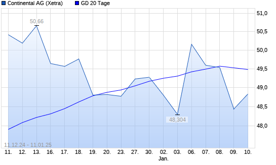 Mit dem Rücksetzer auf 64,58 EUR hat die Continental-Aktie am 10.01.2025 die 20-Tage-Linie nach unten gekreuzt.