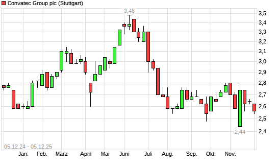 Mit dem Rücksetzer auf 2,50 EUR hat die ConvaTec Group-Aktie (ISIN GB00BD3VFW73) am 04.12.2025 ein neues 12-Monats-Tief erreicht und damit den Kurs vom 17.11.2025 eingestellt.