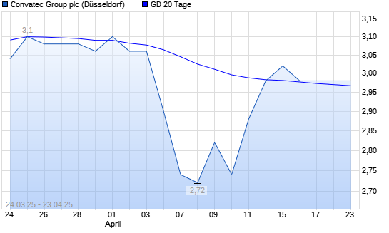 Mit dem Anstieg auf 3,00 EUR hat die ConvaTec Group-Aktie am 22.04.2025 die 20-Tage-Linie nach oben gekreuzt.