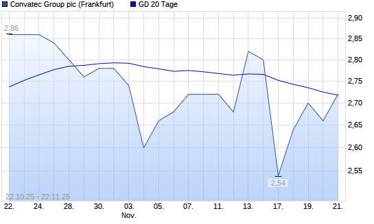 Mit dem Anstieg auf 2,72 EUR hat die ConvaTec Group-Aktie am 21.11.2025 die 20-Tage-Linie nach oben gekreuzt.