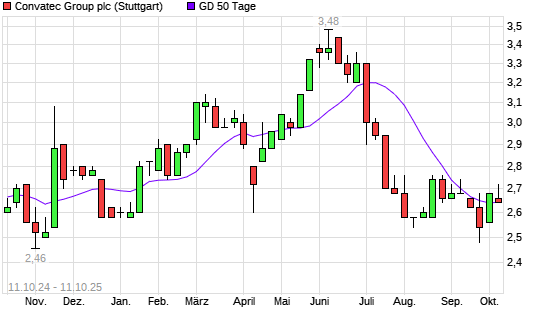 Mit dem Rücksetzer auf 2,68 EUR hat die ConvaTec Group-Aktie am 10.10.2025 die 50-Tage-Linie nach unten gekreuzt.