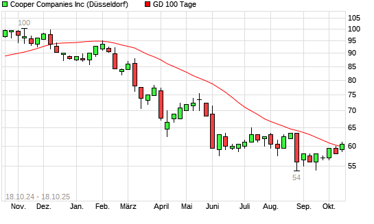 Mit dem Anstieg auf 60,50 EUR hat die Cooper Companies-Aktie am 17.10.2025 die 100-Tage-Linie nach oben gekreuzt.
