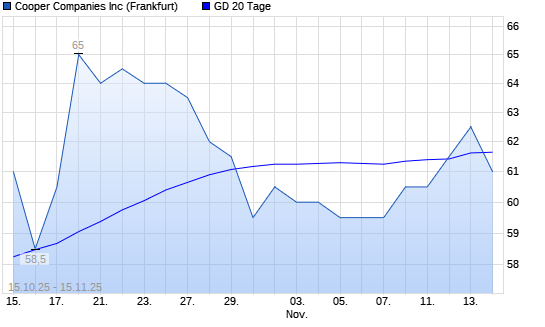 Mit dem Rücksetzer auf 61,00 EUR hat die Cooper Companies-Aktie am 14.11.2025 die 20-Tage-Linie nach unten gekreuzt.