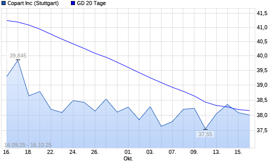 Mit dem Anstieg auf 38,26 EUR hat die Copart-Aktie am 15.10.2025 die 20-Tage-Linie nach oben gekreuzt.