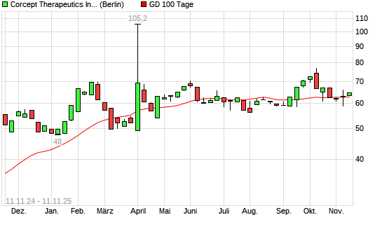 Mit dem Anstieg auf 65,56 EUR hat die Corcept Therapeuticsorpora-Aktie am 10.11.2025 die 100-Tage-Linie nach oben gekreuzt.