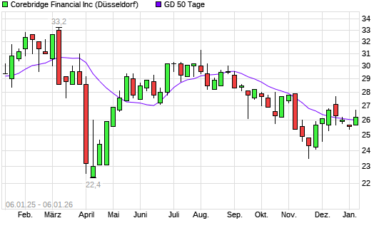 Mit dem Anstieg auf 25,90 EUR hat die Corebridge Financial-Aktie am 05.01.2026 die 50-Tage-Linie nach oben gekreuzt.