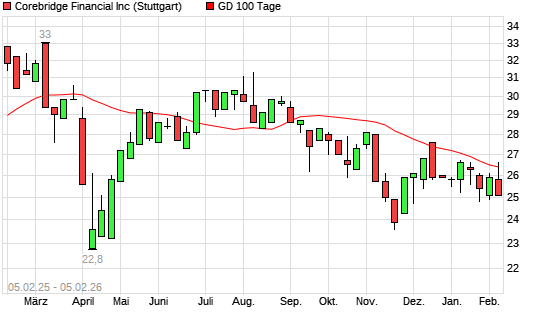 Mit dem Rücksetzer auf 25,30 EUR hat die Corebridge Financial-Aktie am 04.02.2026 die 100-Tage-Linie nach unten gekreuzt.