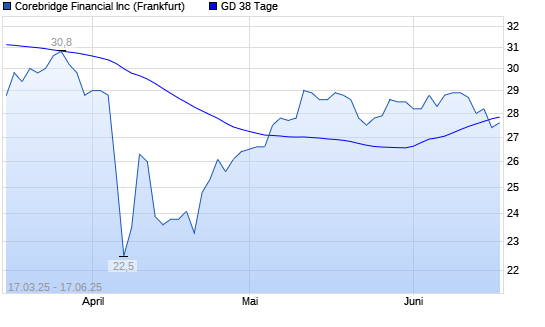 Mit dem Rücksetzer auf 27,40 EUR hat die Corebridge Financial-Aktie am 16.06.2025 die 38-Tage-Linie nach unten gekreuzt.