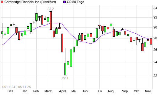 Mit dem Rücksetzer auf 26,40 EUR hat die Corebridge Financial-Aktie am 04.11.2025 die 50-Tage-Linie nach unten gekreuzt.